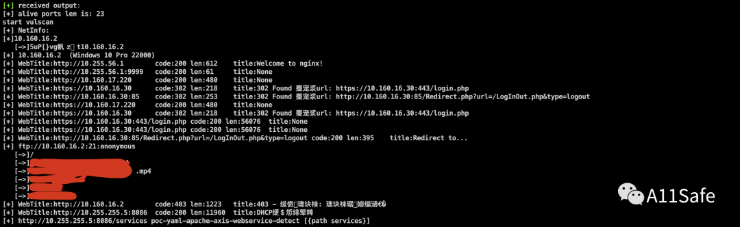 上传 FSCAN 针对所有私有网段进行漏洞扫描