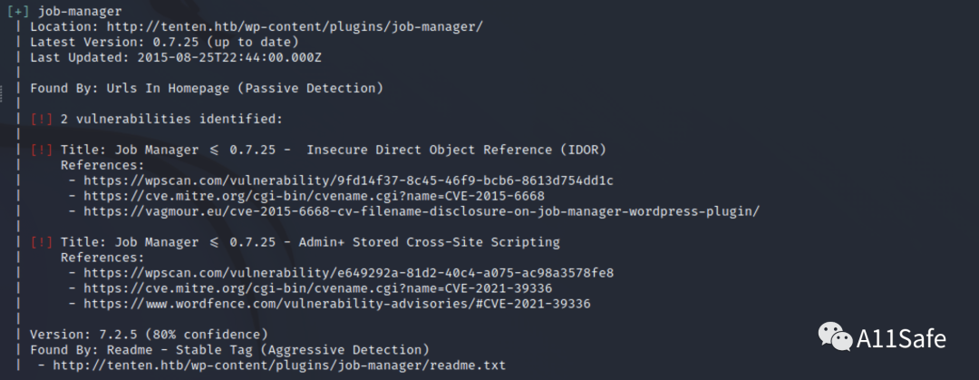 发现存在插件 Job Manager,其中存在两个漏洞,分别是 IDOR 和 XSS