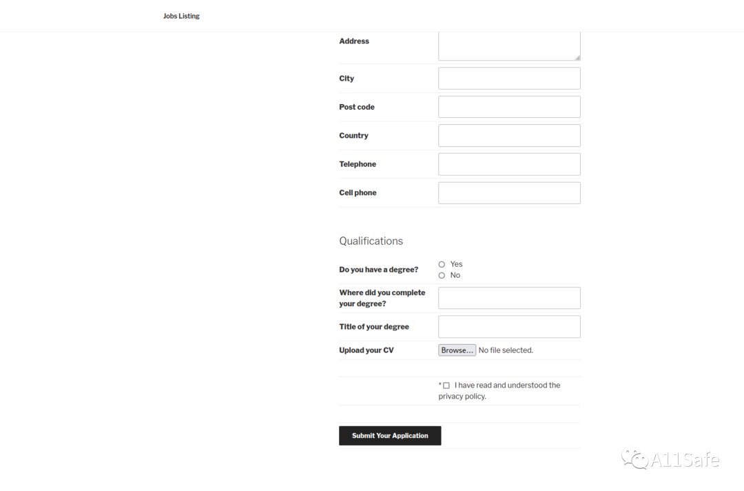 虽然存在文件上传点,但上传 PHP 脚本文件后提交简历会出错