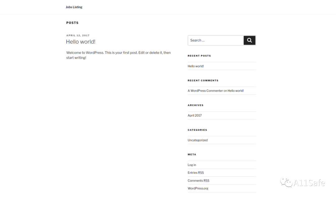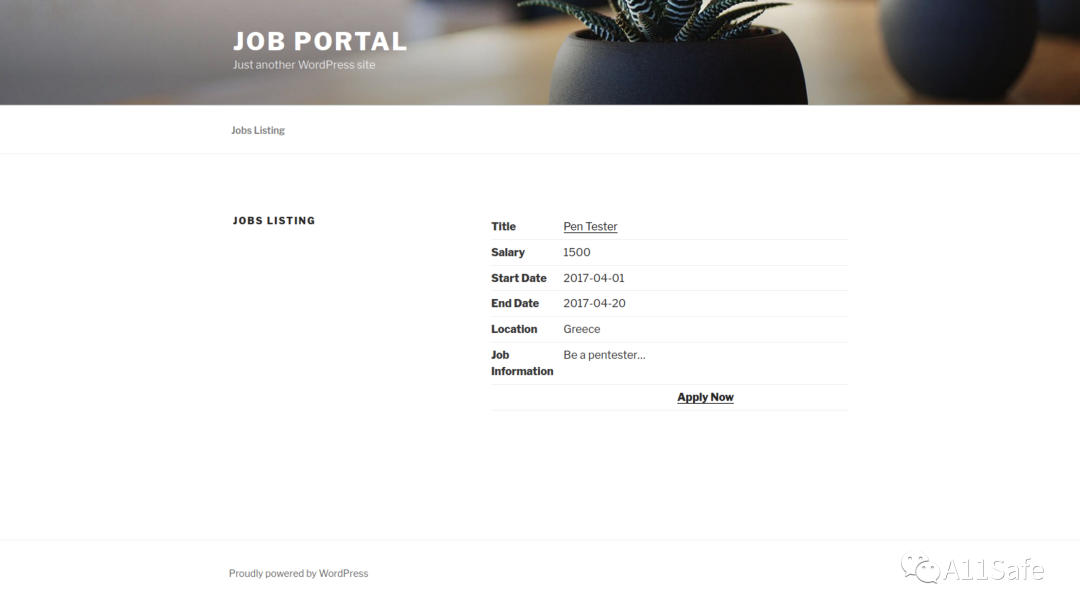 再次访问页面如下,站点采用模版是 WordPress,其标题为 Job Potral