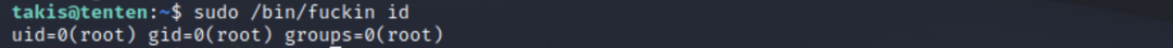 sudo /bin/fuckin id