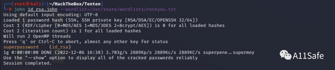 通过 ssh2john 把id_rsa转换为哈希,以便使用 john 爆破