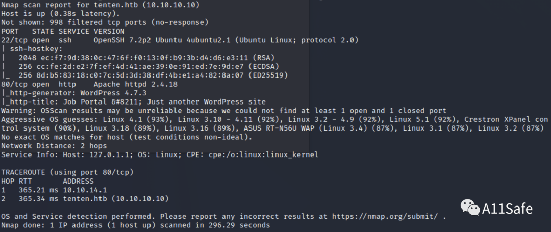 扫描结果显示目标仅开放22、80端口