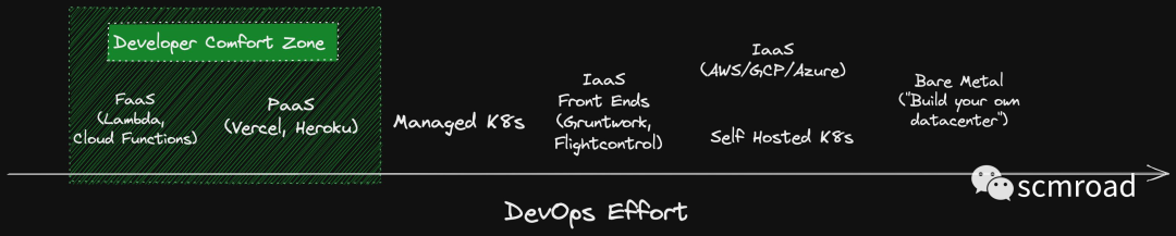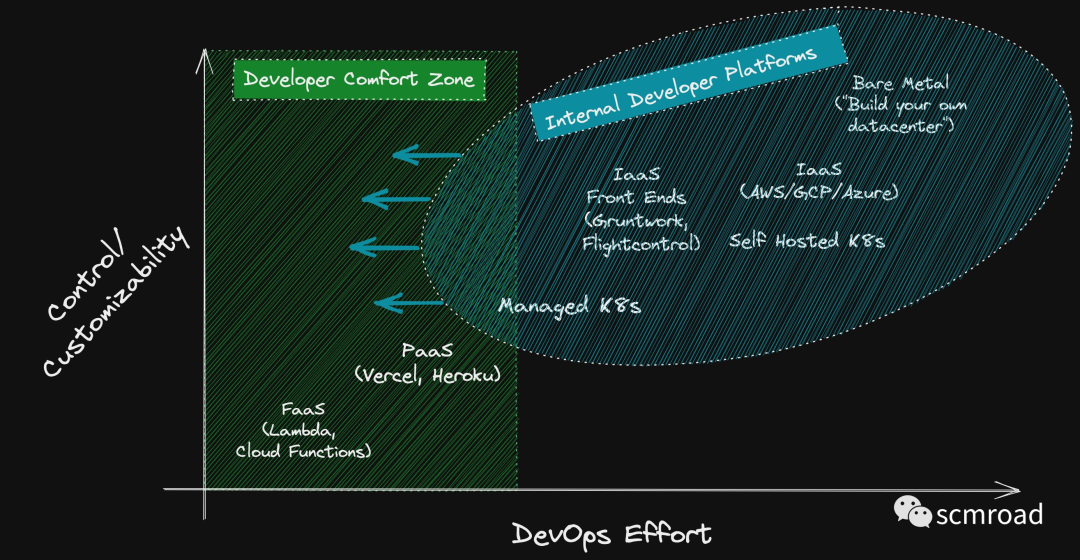 事实 2:随着公司/组织的发展,其需求可能会“超出”由 FaaS 和 PaaS 产品施加的限制。然后挑战变成在不离开开发者舒适区的情况下向上移动控制轴。这就是平台工程发挥作用的地方!