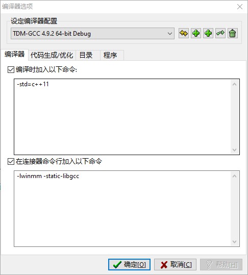 }注意需要使用c++11标准,且要引入多媒体函数库 -lwinmm。 这里我使用的是devc,引入如图