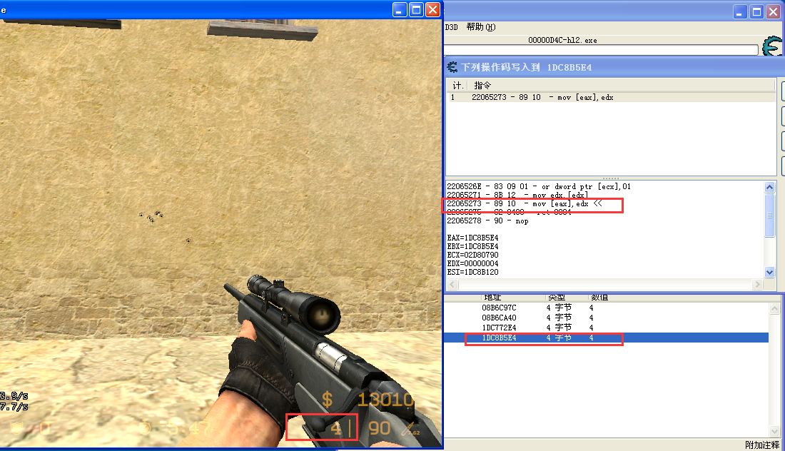 在前面的课程 FPS 游戏实现方框透视 中我们实现了对CS中游戏人物的透视效果,今天我们就来研究下狙击枪如何变成机关枪!原理很简单,直接去掉枪的上膛动画,配合无线子弹就完事了,这里只提供一种分析思路。