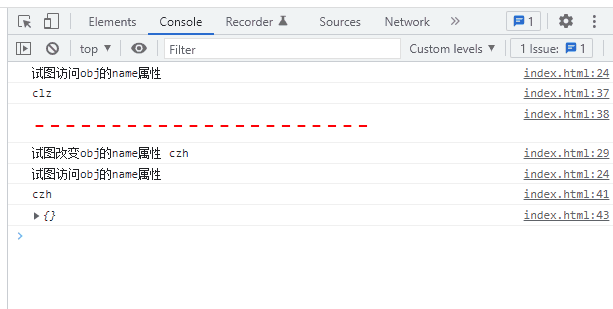 console.log('试图访问obj的name属性')