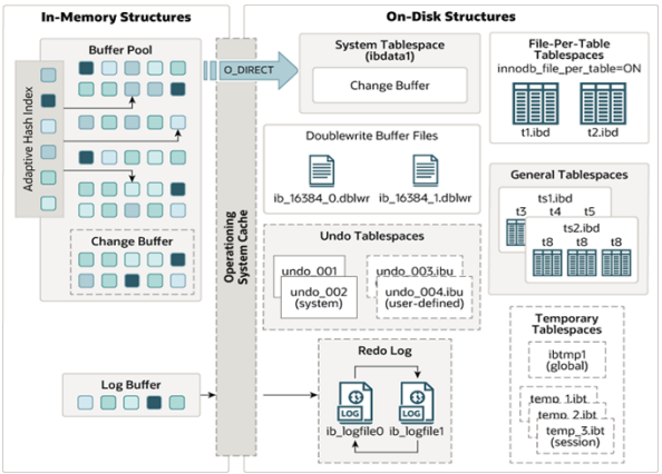 在左侧的内存结构中,主要分为这么四大块儿:Buffer Pool、Change Buffer、Adaptive Hash Index、Log Buffer。接下来介绍一下这四个部分。
