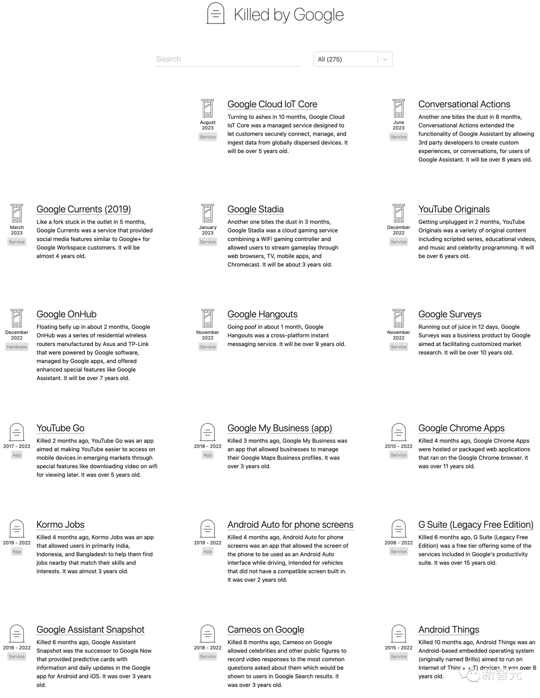 可以说,抛弃现有项目,转而支持那些还没成熟的半成品新项目,是谷歌20多年来的「传统艺能」了。