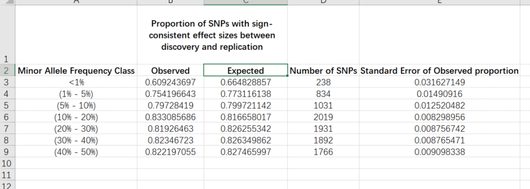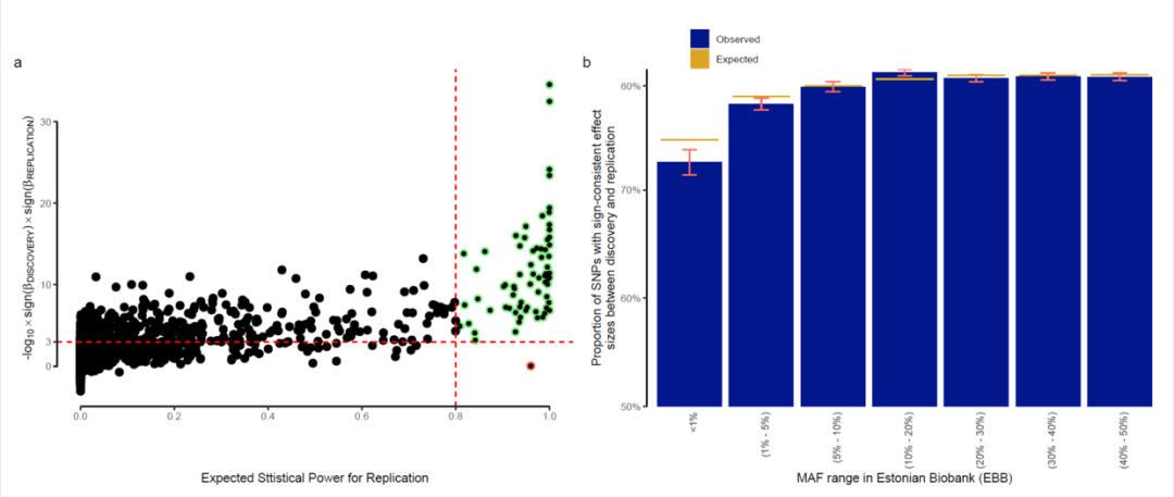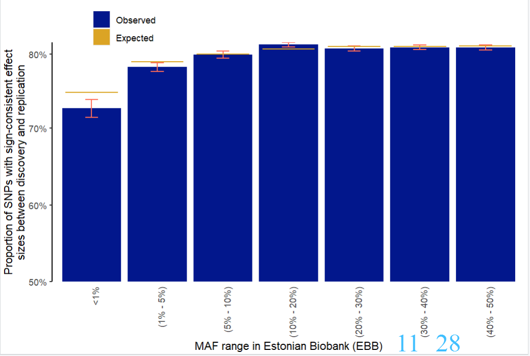 y="Proportion of SNPs with sign-consistent effect\nsizes between discovery and replication")