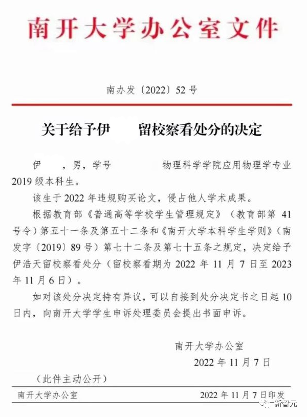 而此前,伊同学已经取得了北大物院的直博生保送资格。南开大学给出的文件中,并未明确写明伊某的保送资格是否取消。