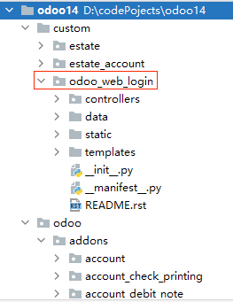 1、把下载的odoo web login screen压缩包解压后,放自定义插件目录,如下