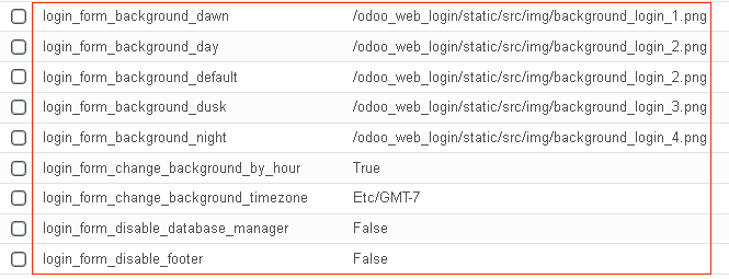登录系统,查看系统参数Settings->Technical->Parameters->System Parameters,如下,我们可以根据实际需要修改对应参数配置