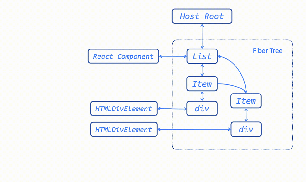 为了渲染组件,React 构建了 Fiber 树 — 一个 React 用于渲染虚拟 DOM 的内部数据结构。虽然 Fiber 树看起来像一棵树,但它是一个双向图,将所有 Fiber 节点、React 组件实例和关联的 HTML DOM 元素强连接起来。理想情况下,React 维护对组件 Fiber 树的根的引用,并防止 Fiber 树被垃圾回收。当一个组件被卸载时,React 会断开组件的根与 Fiber 树的其余部分之间的连接,然后这些部分就可以被垃圾回收了。