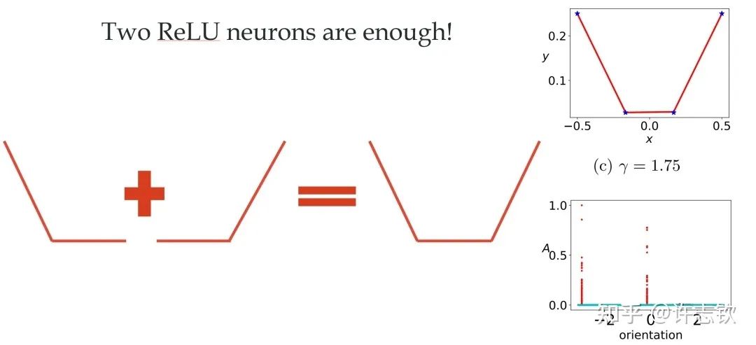 频率原则还有很多未解的问题需要被探索。 在非梯度下降训练的过程,比如粒子群算法怎么证明频率下降[14]?如何在理论上论证多尺度神经网络对高频的加速效果?是否有更稳定更快的高频加速算法?小波可以更细致的描述不同局部的频率特征,能否用小波更细节地理解神经网络的训练行为?数据量、网络深度、损失函数怎么影响频率原则?频率原则可以指导算法设计的理论,为训练规律提供一种“宏观”描述。对于“微观”机制,我们需要进一步研究。同样是低频到高频的学习过程,参数的演化可以非常不一样,比如一个函数可以用一个神经元表示,也可以用10个神经元(每个神经元的输出权重为原输出权重的1/10)一起表示,从输入输出函数的频率来看,这两种表示完全没有差别,那神经网络会选择哪一种表示,以及这些表示有什么差别?下面我们就要更细致地看参数演化中的现象。