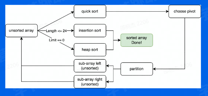 注:插入排序实际使用partiallnsertionSort,即有限制次数的插入排序。