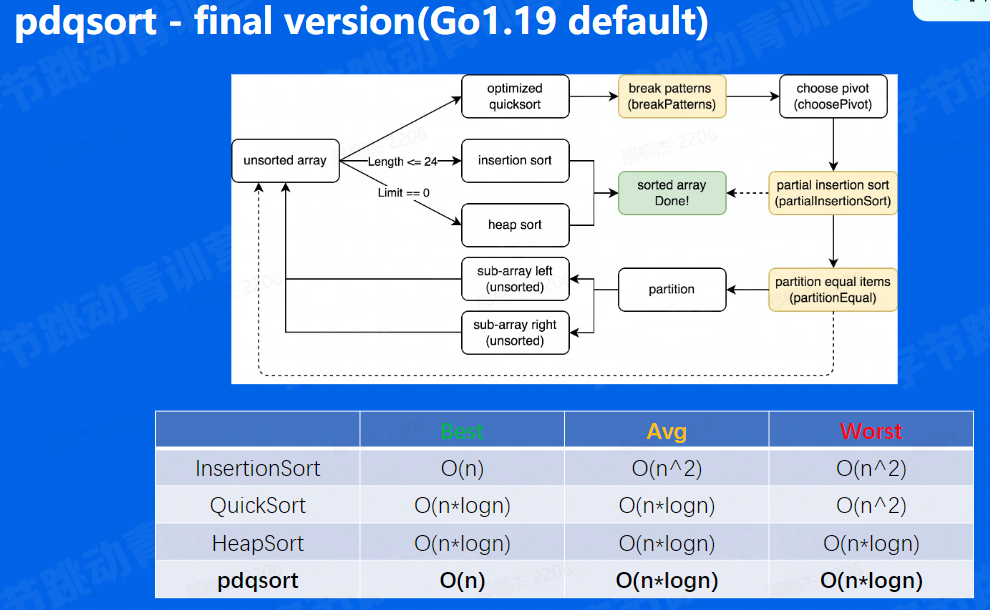 课程讲师是给go官方提供了重新实现go排序算法