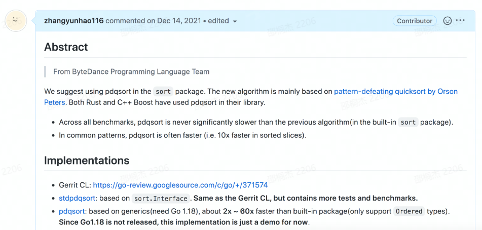 当然,今天这篇文章在《字节跳动技术团队》也有讲到《打造 Go 语言最快的排序算法》