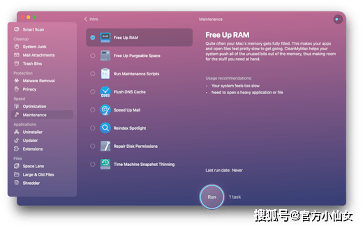 每次你的Mac停止时,你都有一整套加速工具:释放RAM,维护脚本,登录项控件,启动代理和挂起应用程序。这将减少您的系统负载并调整Mac以获得最佳性能。当您的机器高效工作时,您也可以提高工作效率。