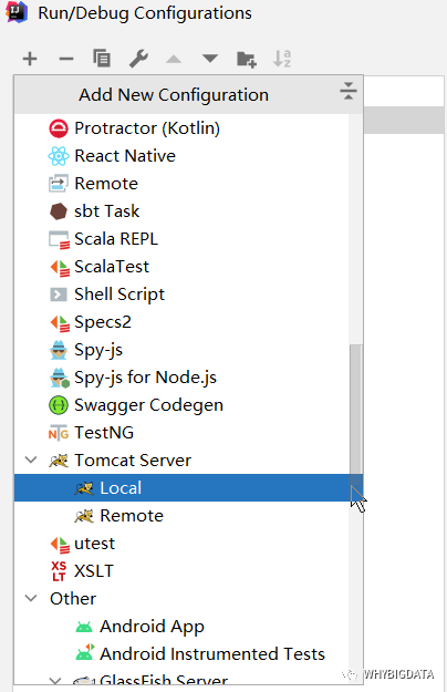视图下单击“+”按钮新增一个Tomcat Server(Local模式)
