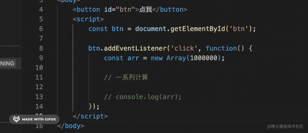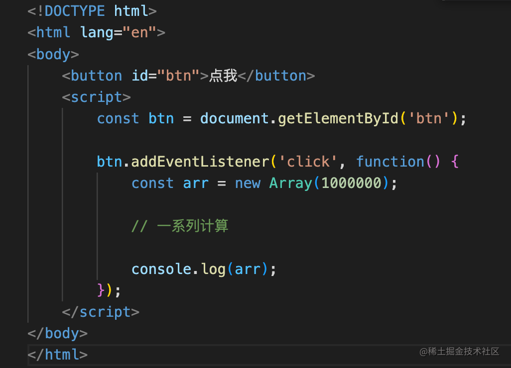 一个按钮,点击之后创建一个数组,执行一些计算。