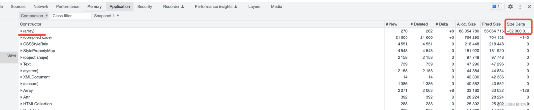 比如这时候可以看到最大的内存增长是 array 对象: