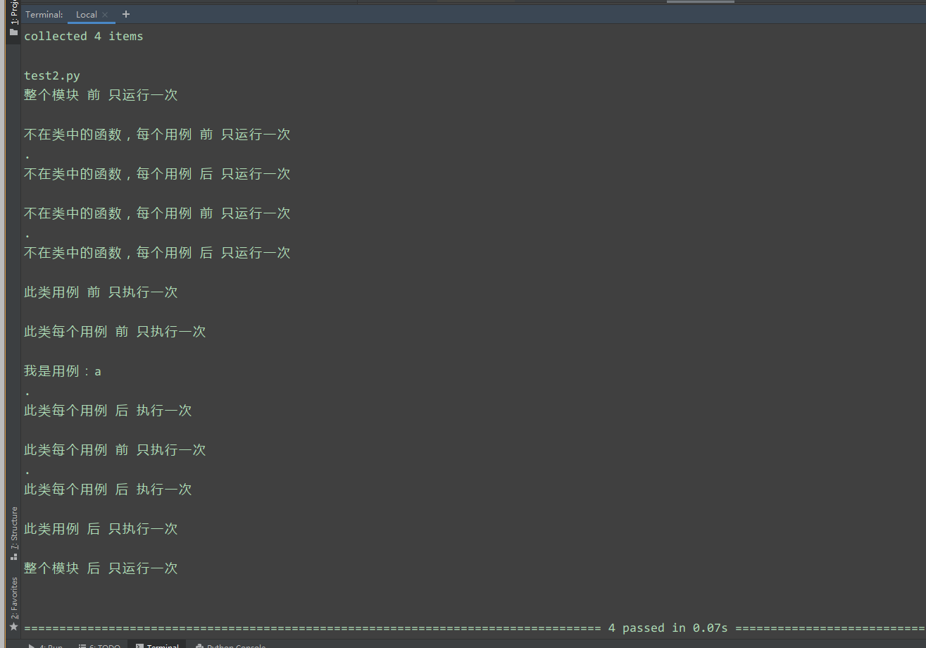 print('\n不在类中的函数,每个用例 后 只运行一次')