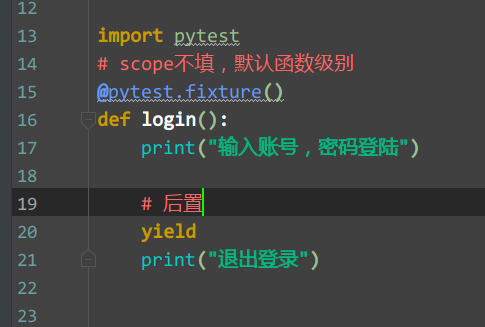 2、这是原始用法,下面看使用Fixture,Fixture 其实就是自定义 pytest 执行用例前置和后置操作,首先创建 conftest.py 文件 (规定此命名),导入 pytest 模块,运用 pytest.fixture 装饰器,默认级别为:函数级:
