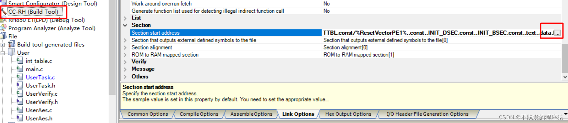 W0561322:Section alignment mismatch : "R_FCL_CODE_ROMRAM.text"