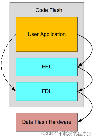 FDL和EEL都是操作Data Flash Memory,EEL依托于FDL,在FDL库中已经讲解了使用EEL的方法。EEL和FDL关系如下图所示: