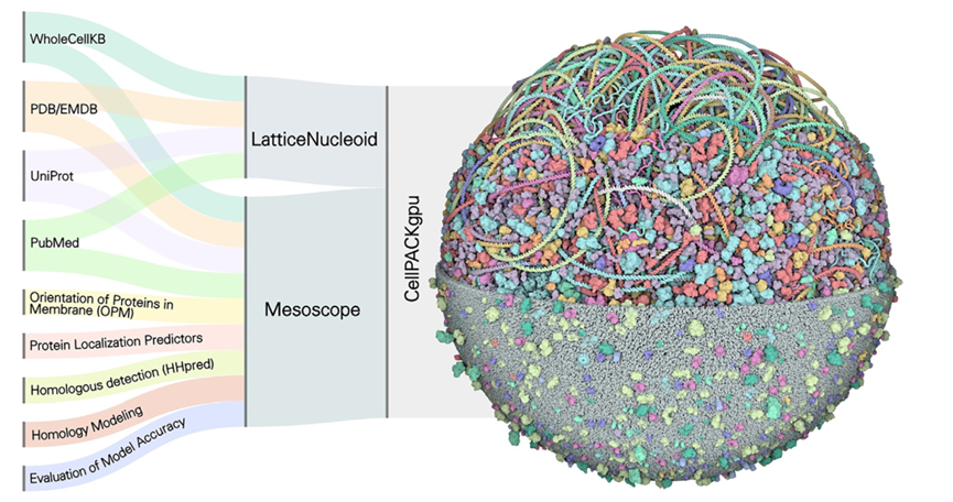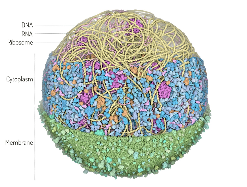 这项研究是对整个细菌细胞的大分子结构进行微观模拟的理论模型证明。据我们所知,这是第一个完整的细胞在大分子细节的结构模型,这份研究目的是作为一个例子来展示如何利用目前的知识和当前的技术构建一个完整的细胞结构模型。