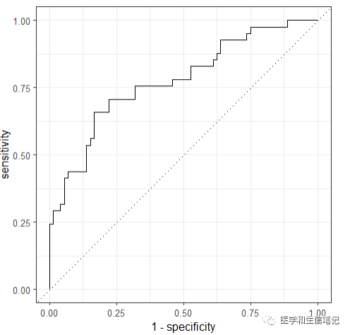 用这个pred就可以画ROC曲线了,这个就是多指标联合诊断的ROC曲线。