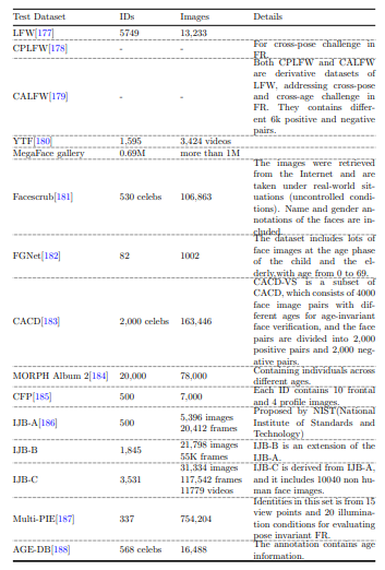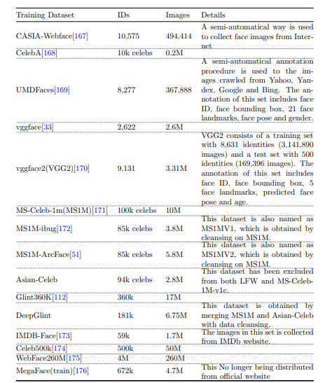 最后作者总结了人脸识别相关竞赛,比如 FRVT、MegaFace challenge、MS-Celeb-1M challenge。