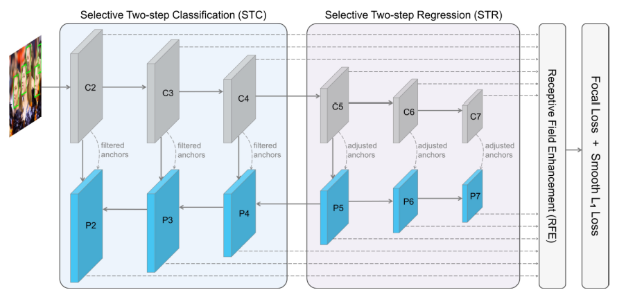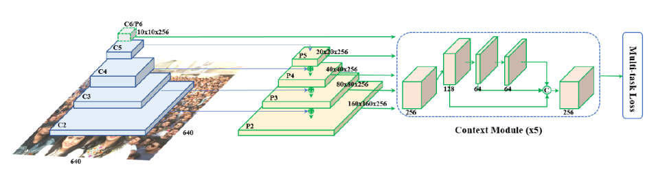 人脸检测是人脸识别的第一步,现如今使用特征金字塔方法的人脸检测方法已经相对成熟,比如SRN、RetinaFace: