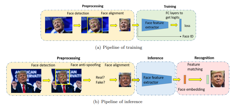 特别值得一提的是,现如今针对人脸识别系统的攻击也越来越普遍,在人脸识别推理中,检测到人脸后,要进行系统反欺诈的真/假人脸的判断,这也成为人脸识别系统的重要标配。