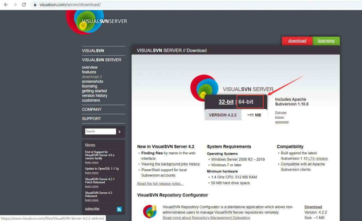 c. 下载得到SVN服务端:VisualSVN-Server-4.2.2-x64.msi
