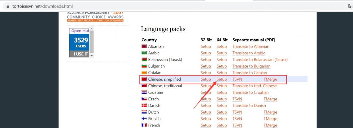 b. 在 download 页面下载选择指定的位数,下载SVN客户端 TortoiseSVN