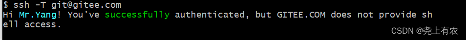 ssh -T git@gitee.com #注意,'T'是大写的