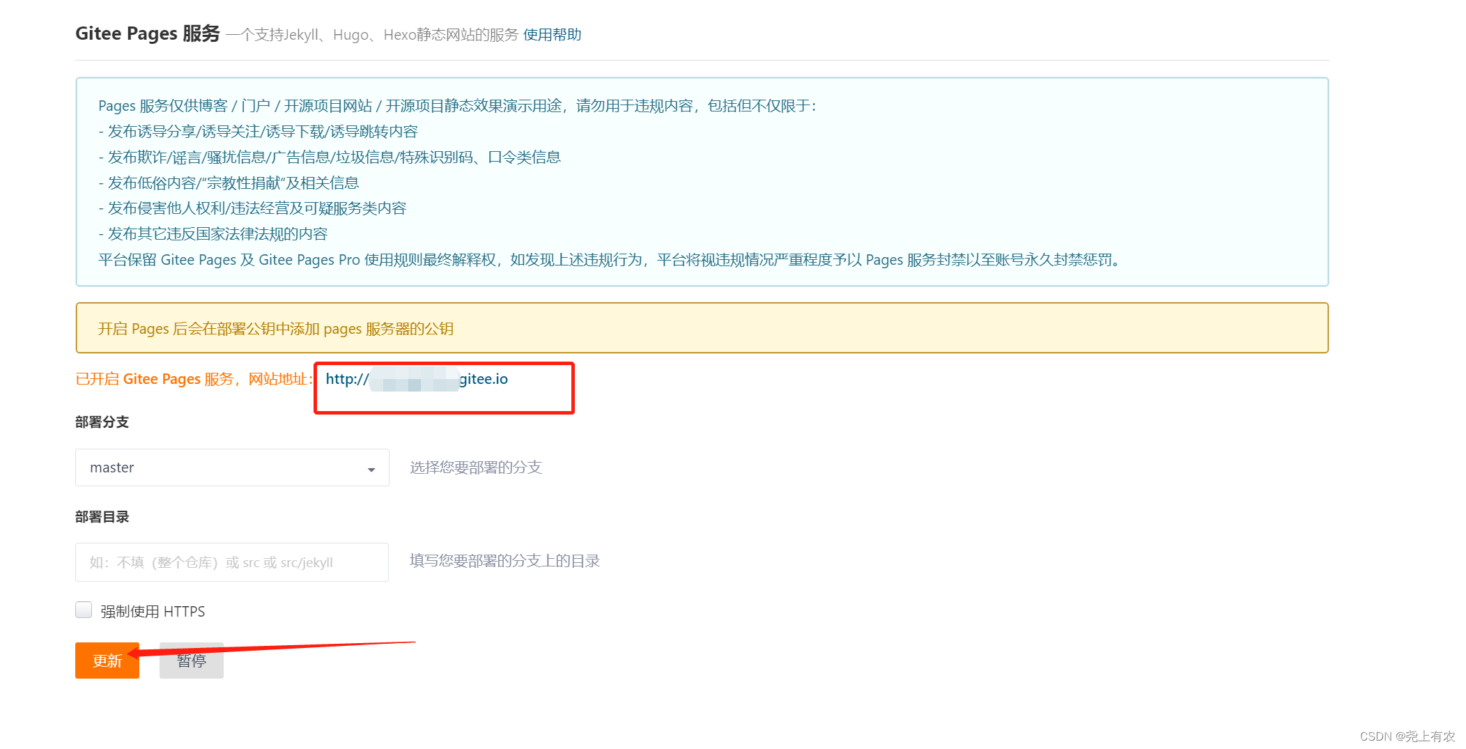 访问Gitee Pages 服务网站地址