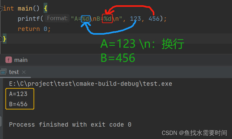 printf("A=%d\nB=%d\n", 123, 456);总结一下 printf 的公式