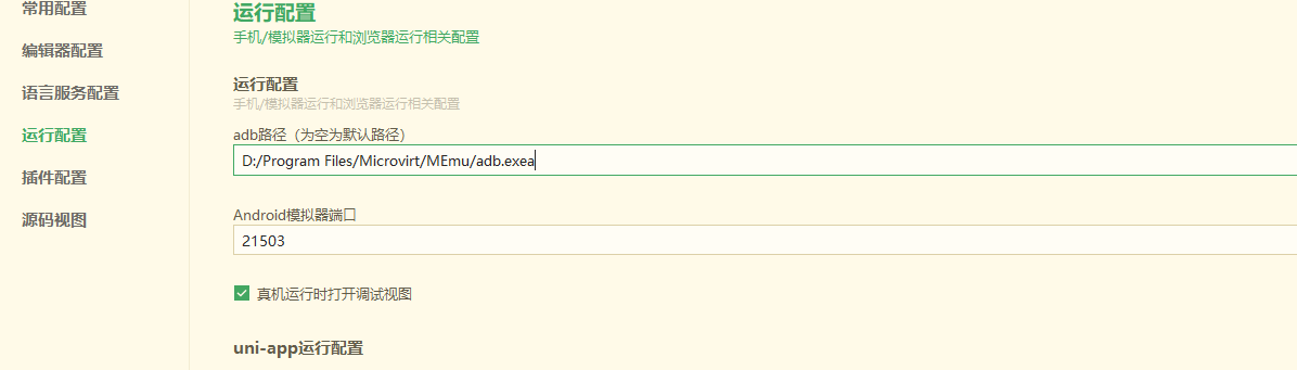 配置HBuilderX的运行配置