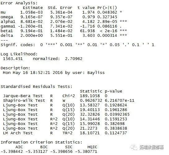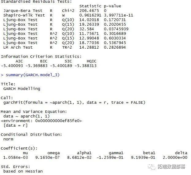 我们从在R中拟合APARCH开始: