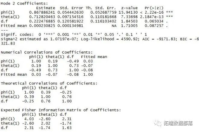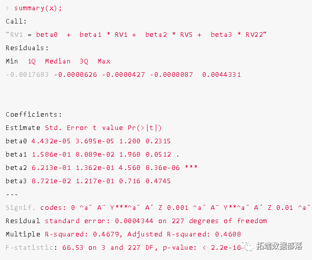 我们可以得到模型的系数,以及误差分析