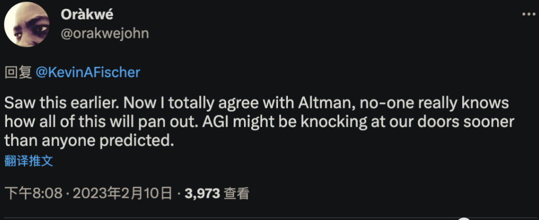 甚至还有人已经搬出了OpenAI CEO那句“AGI可能比任何人预料的更早来敲响我们的大门”。