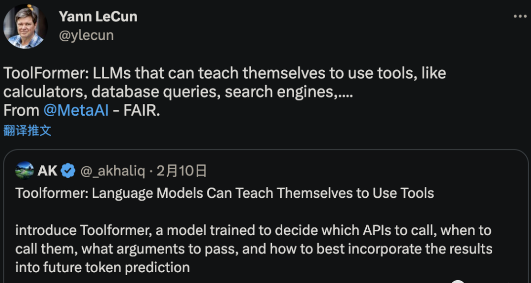 发明新工具还不一定,但Meta AI确实已经研究出了可以自己搞懂并学会使用工具的AI。LeCun转发的一篇最新论文显示,这个名叫ToolFormer的新AI,可以教自己使用计算机、数据库和搜索引擎,来改善它生成的结果。