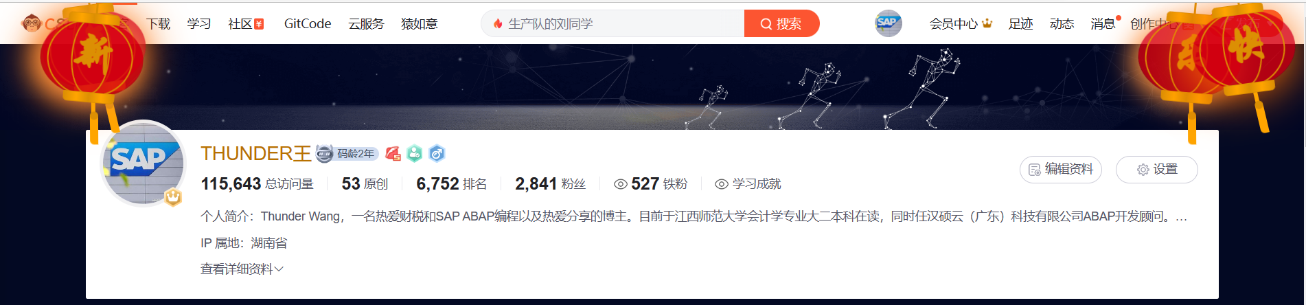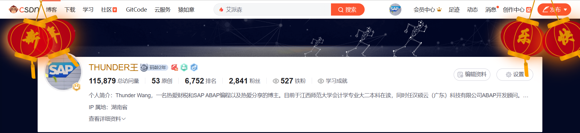 💂作者简介: THUNDER王,一名热爱财税和SAP ABAP编程以及热爱分享的博主。目前于江西师范大学会计学专业大二本科在读,同时任汉硕云(广东)科技有限公司ABAP开发顾问。在学习工作中,我通常使用偏后端的开发语言ABAP,SQL进行任务的完成,对SAP企业管理系统,SAP ABAP开发和数据库具有较深入的研究。