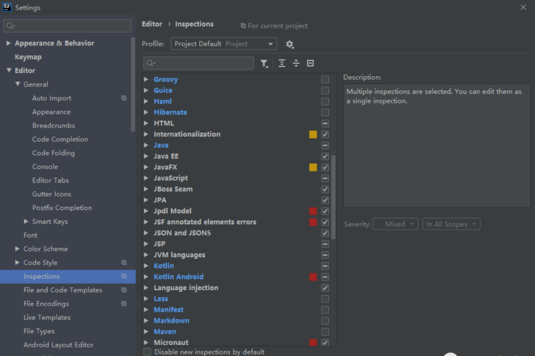 与eclipse类似,idea也可以自己关闭代码检查 减少资源使用,但不推荐全部关闭,(是大佬当我没说),把我们项目中不会使用到的关闭就好了