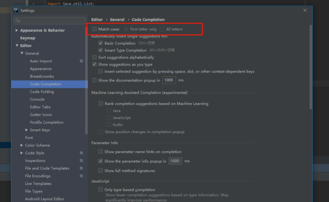 把这个勾去掉,(有的idea版本是选择选项 选择none即可),例如String 输入string 、String 都可以提示