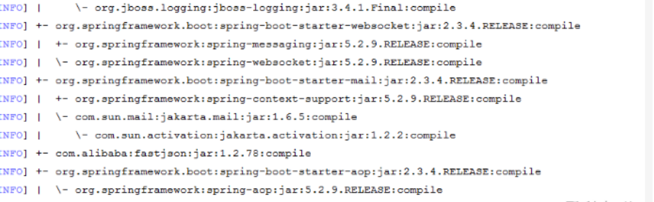 如果是使用 mvn dependency:tree 命令 , 结果是下图这样 很不方便查看