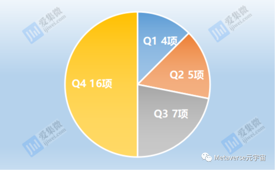 从时间来看,32条元宇宙专项政策50%发布于2022年第四季度,其次为第三季度。可见,2022年元宇宙专项政策集中爆发于下半年。